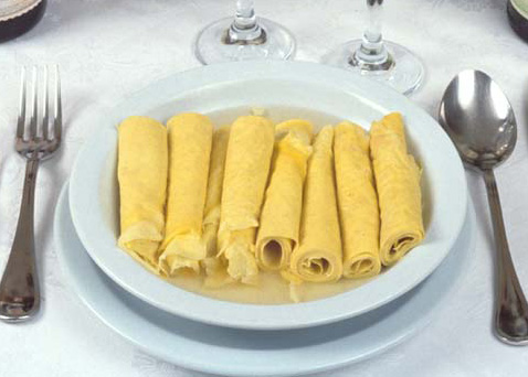 Le scrippelle si presentano come sottili “frittatine” preparate con farina , uova e acqua. La loro versione “mbussa“, ossia bagnate con brodo, è una ricetta tipica del teramano. Praticamente le scrippelle ‘mbusse sono una rivisitazione di un piatto francese, le classiche crepes, molto raffinate e dal sapore delicato.